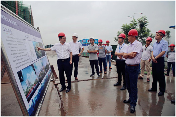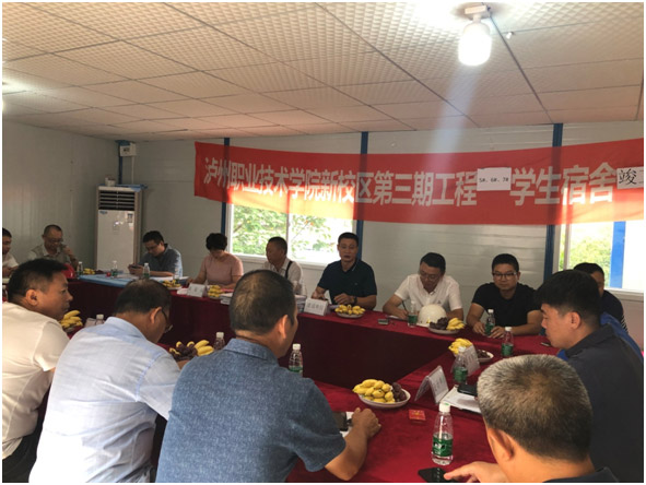 2019年6月13日,瀘州職業(yè)技術(shù)學(xué)院學(xué)校黨委書記何杰帶領(lǐng)團隊現(xiàn)場調(diào)研,視察了瀘職院三期工程及培訓(xùn)中心,董事長石清華帶領(lǐng)項目部全體管理人員表示熱烈歡迎,由總經(jīng)理馮濤及副總經(jīng)理朱曉飛分別對三期工程、培訓(xùn)中心進行細致講解,介紹每個單體項目的使用功能、現(xiàn)階段的進展情況及交付使用時間。施工工作得到學(xué)院團隊的一致好評,調(diào)研工作取得了圓滿成功!